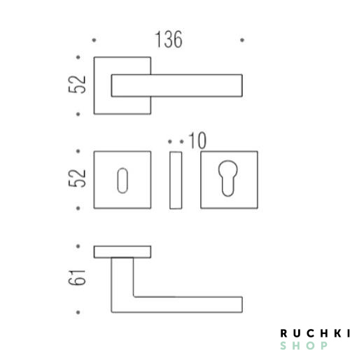 Тип основания ручки – квадратное.