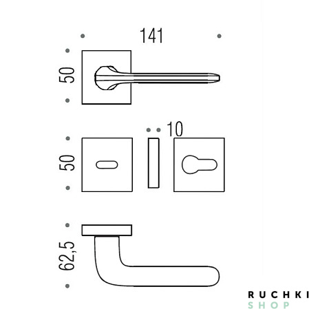 Тип основания ручки – квадратное.